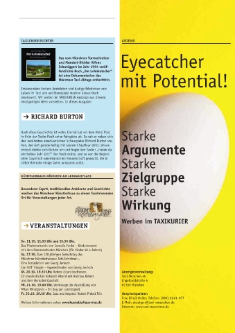 Weitere Informationen unter: www.kuenstlerhaus-muc.de E-Mail: anzeigen@taxi-muenchen.de