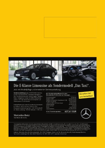 Einarm-Taxi-Dachzeichen, Festplatten-Navigation Mercedes-Benz E 220 d „Das Taxi“ Neuwagen